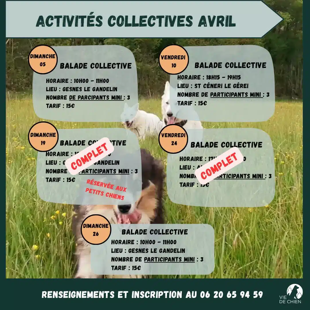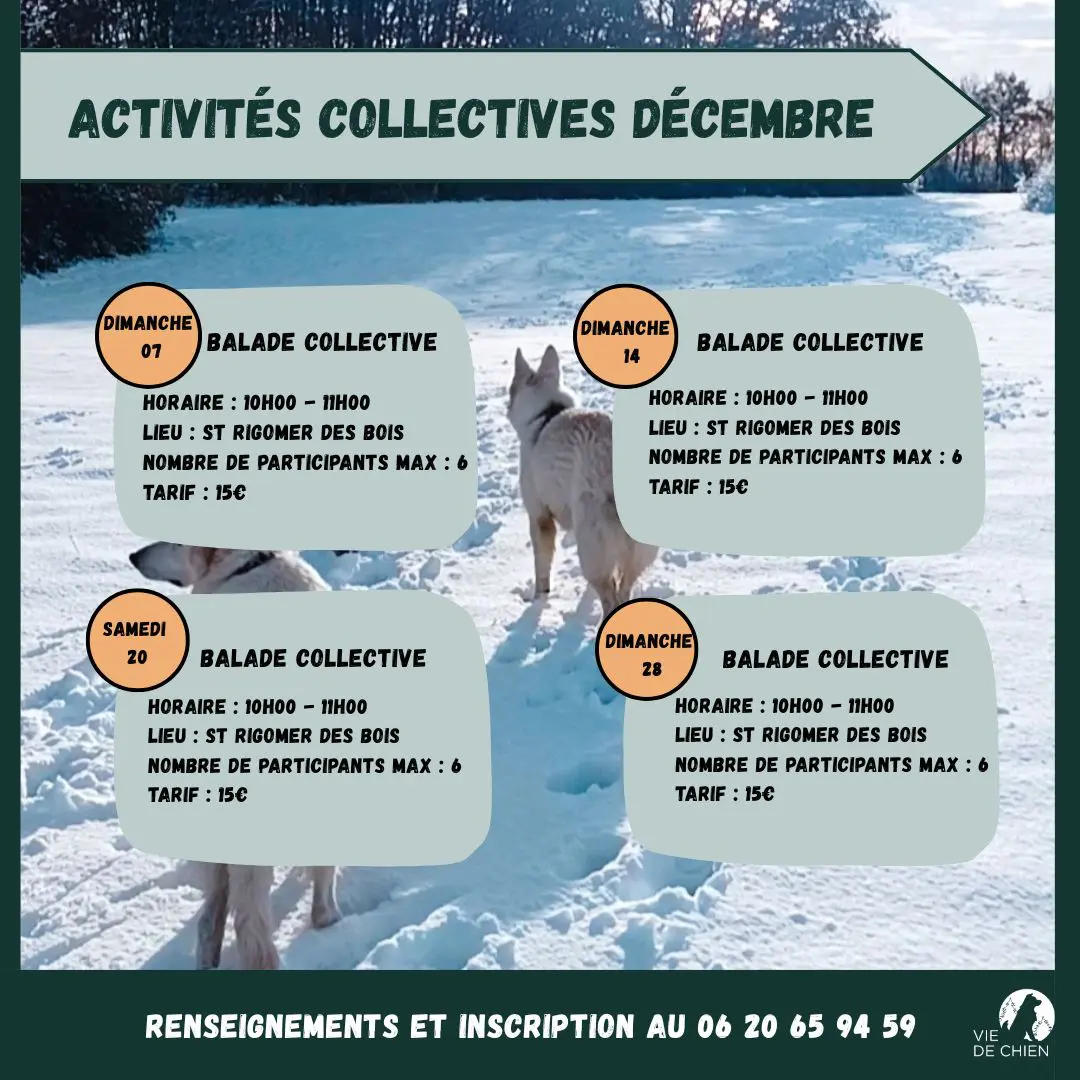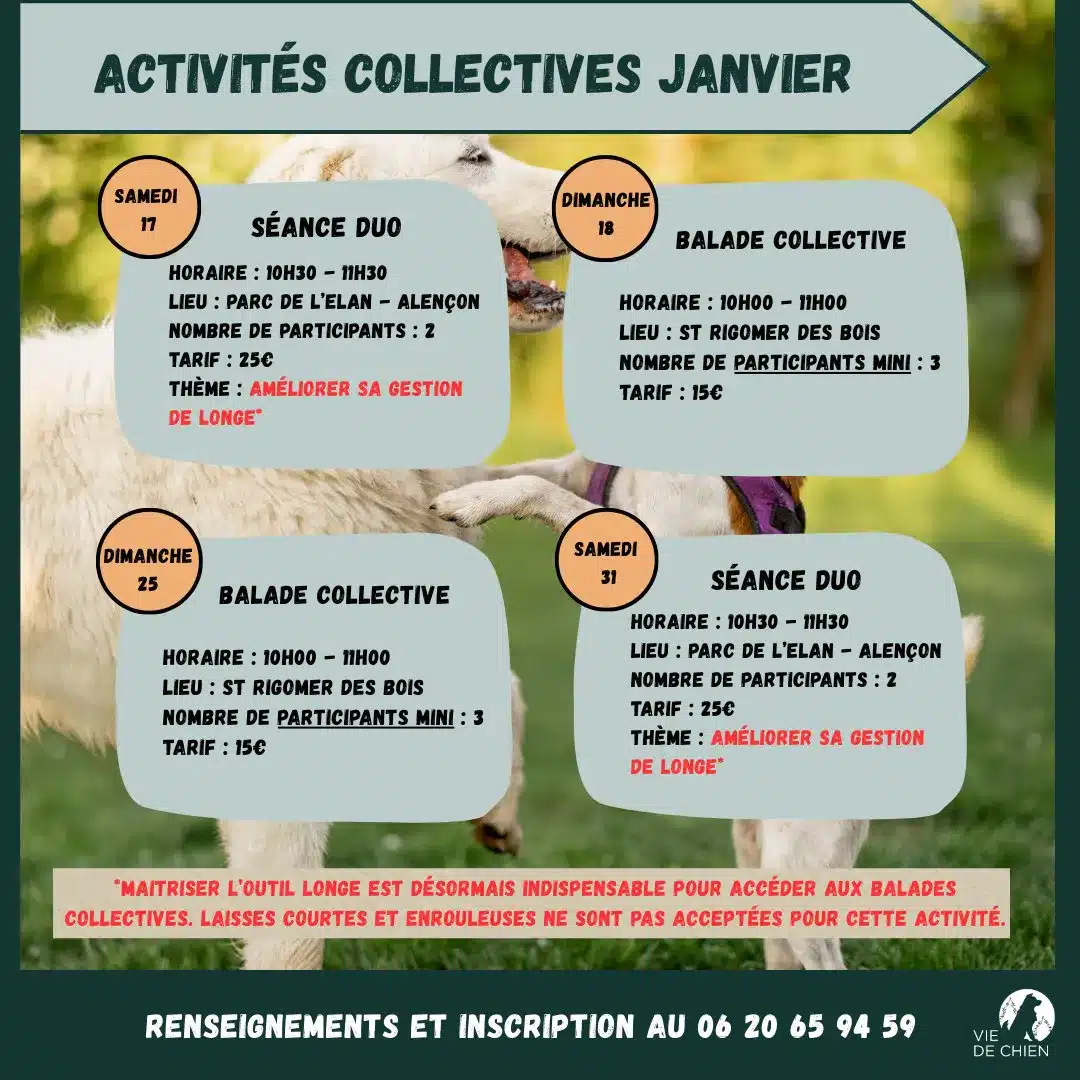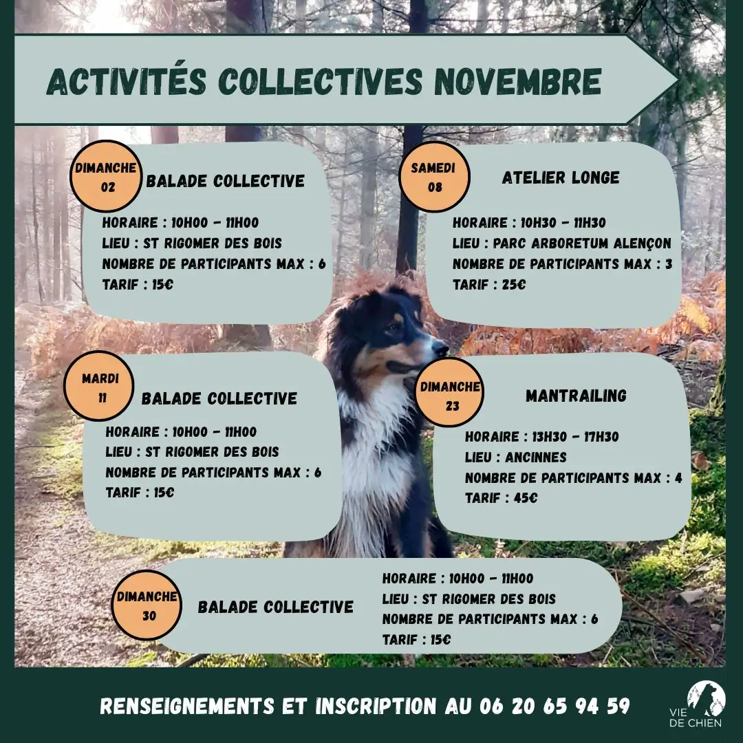 Nous proposons des cours d’éducation canine adaptés à tous les âges et niveaux, des balades éducatives en groupe ainsi que des séances individuelles pour travailler sur des apprentissages spécifiques (le travail avec la longe, communication canine, suivi naturel, rappel …).